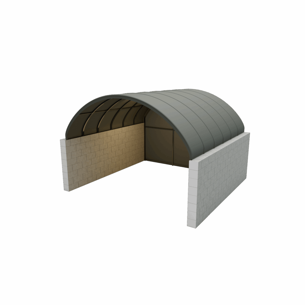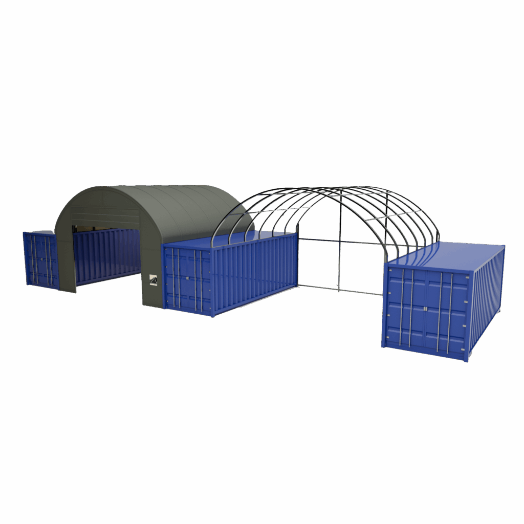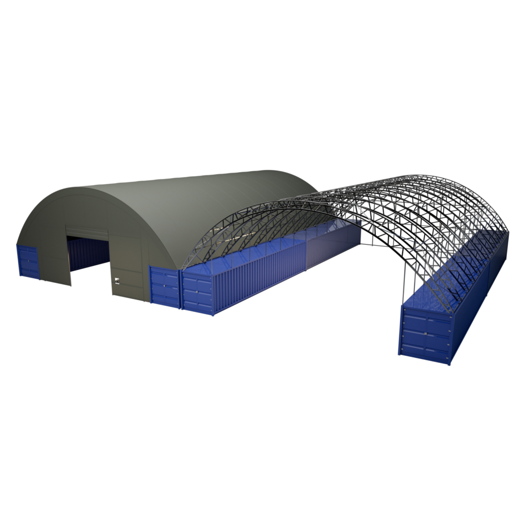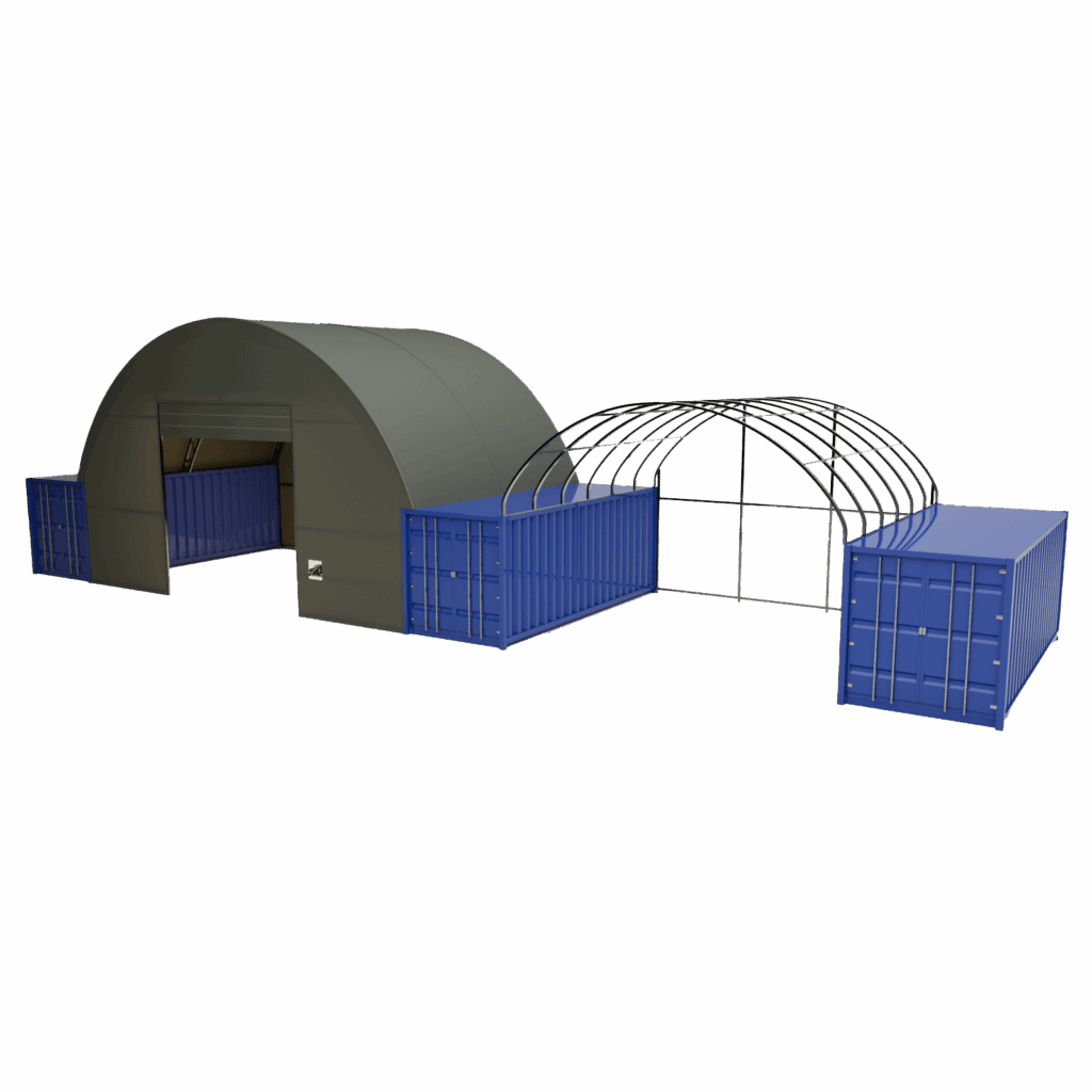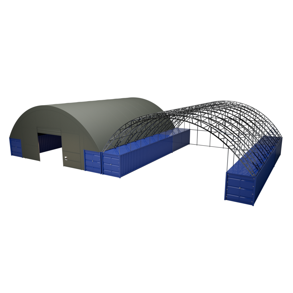 Ak si zakúpite našu plachtovú halu alebo montovaný sklad, balenie obsahuje aj 2 predné plachty a 2 vstupné brány.