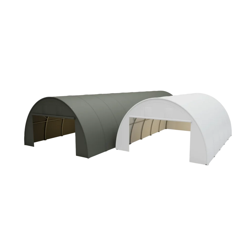 Mūsų pasiūlyme rasite mažus surenkamus angarus, kurių matmenys (plotis × gylis × aukštis) prasideda nuo 6,1 × 6,1 × 3,66 m, o didžiausių angarų matmenys siekia iki 21,35 × 61 × 8,54 m. Jei jums reikia didesnio tentinio angaro ar sandėlio nei tie, kuriuos siūlome, kreipkitės į mūsų konsultantus – suprojektuosime ir pagaminsime praktiškai bet kokio dydžio angarą.