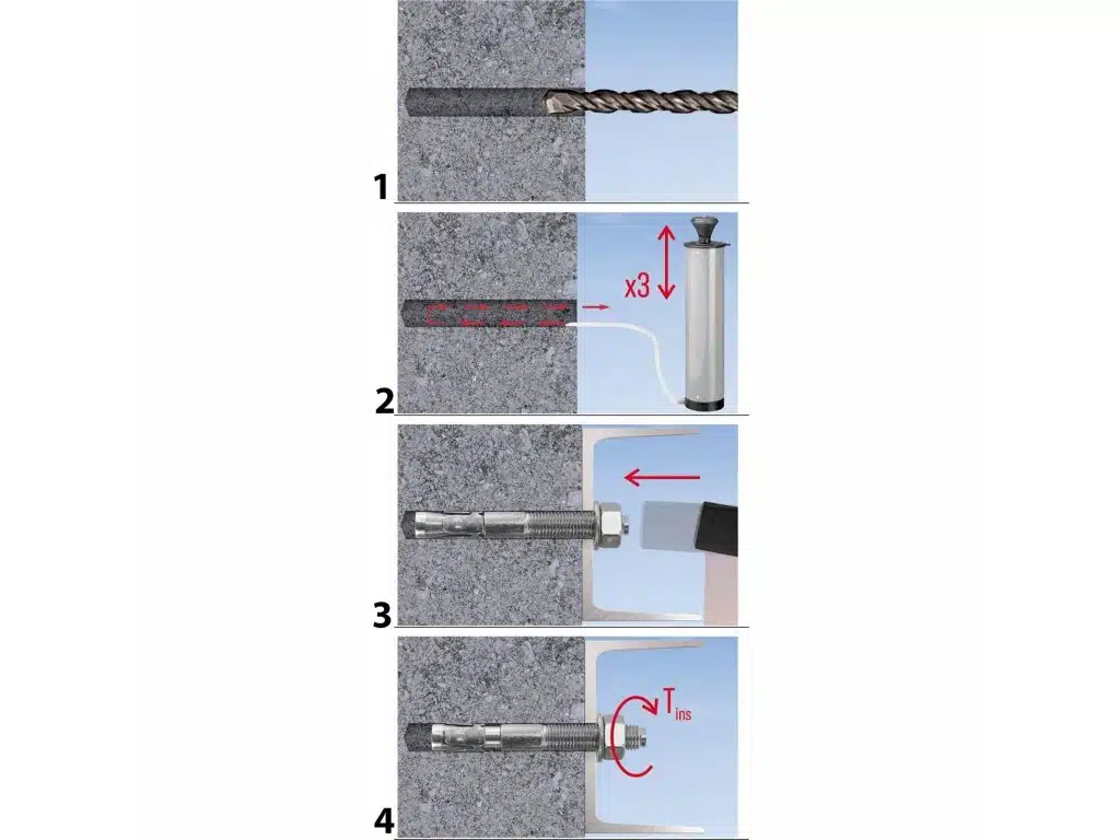 Upevnenie sa vykonáva utiahnutím matice príslušným krútiacim momentom, čo spôsobí posun dilatačného pásu a vytvorenie trvalého ukotvenia v podklade.