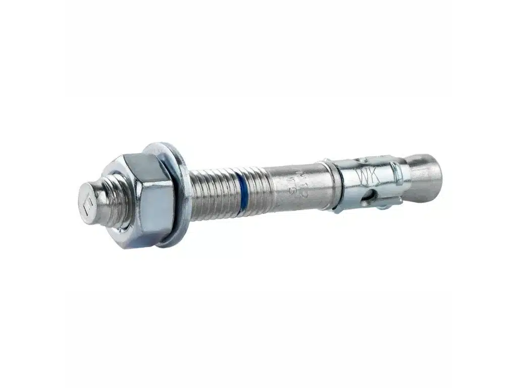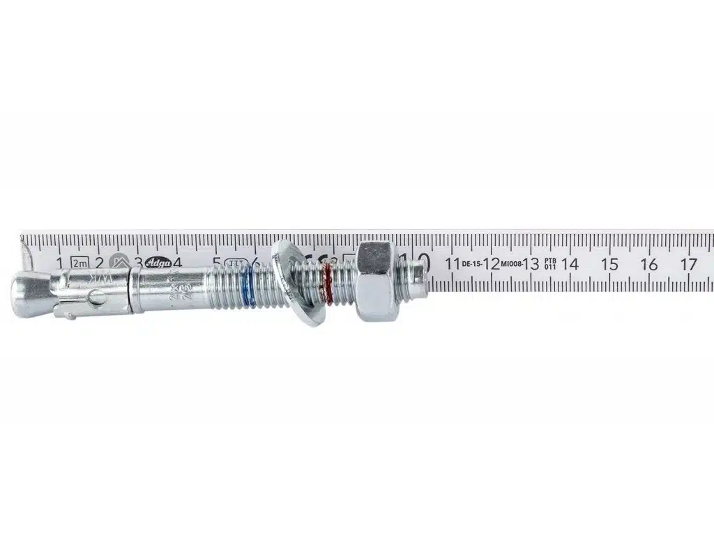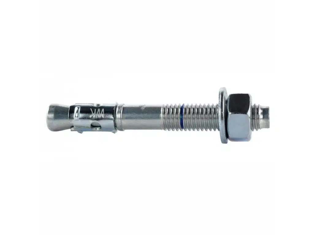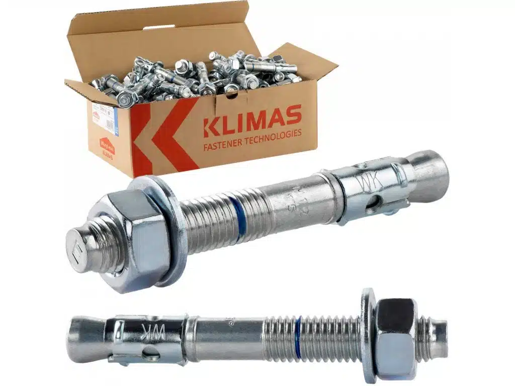 Mechanická oceľová kotva LE-ZN renomovanej firmy Klimas Wkręt-met pozostáva zo závitového čapu s rozperným kužeľom, rozperného pásu, šesťhrannej matice a podložky.