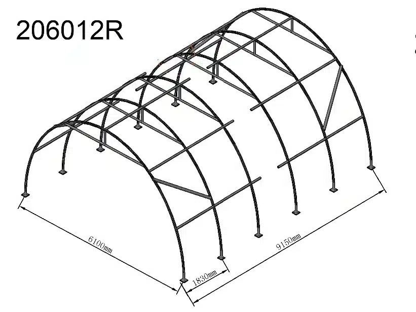 • Pevné rúry spájajúce segmenty spolu s oceľovými rúrami zvyšujú odolnosť haly voči vetru a padajúcemu snehu.