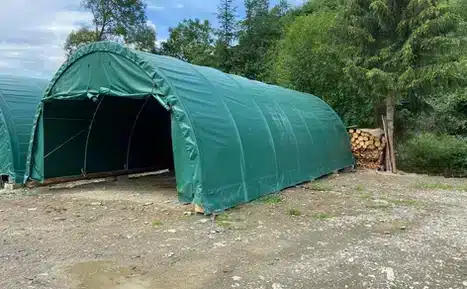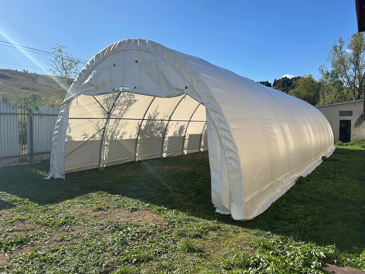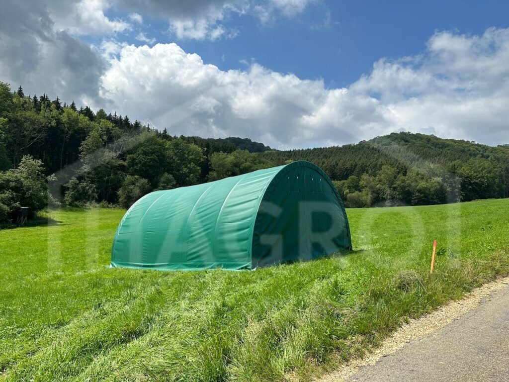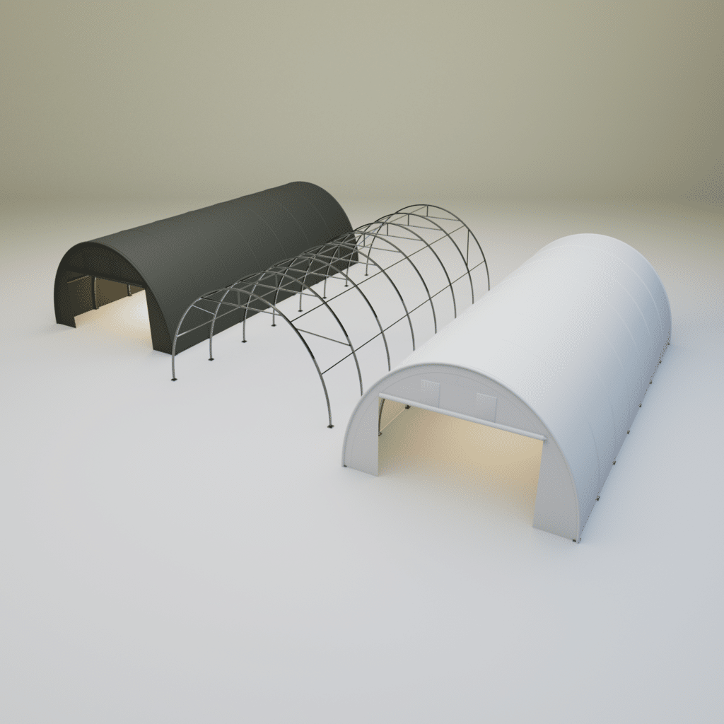Táto oblúková hala je navrhnutá ako praktické a odolné riešenie pre skladovanie materiálu, strojov, vozidiel či poľnohospodárskej techniky. Vďaka oblúkovému tvaru poskytuje maximálne využitie vnútorného priestoru a zároveň vysokú stabilitu celej konštrukcie. Otvárateľné vstupy na oboch stranách zabezpečujú pohodlný prejazd a jednoduchú manipuláciu s technikou aj objemným nákladom.
