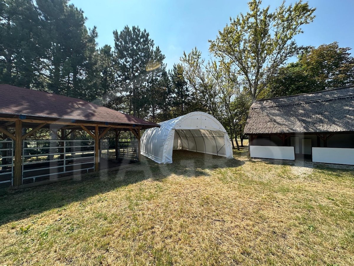 Šírka vstupu 4,3 m a výška vstupu 3,2 m umožňujú pohodlný vjazd aj väčšej techniky. Súčasťou balenia je aj kompletné kotvenie do nespevneného povrchu, čo výrazne uľahčuje montáž a zaisťuje stabilitu bez potreby dodatočných úprav.