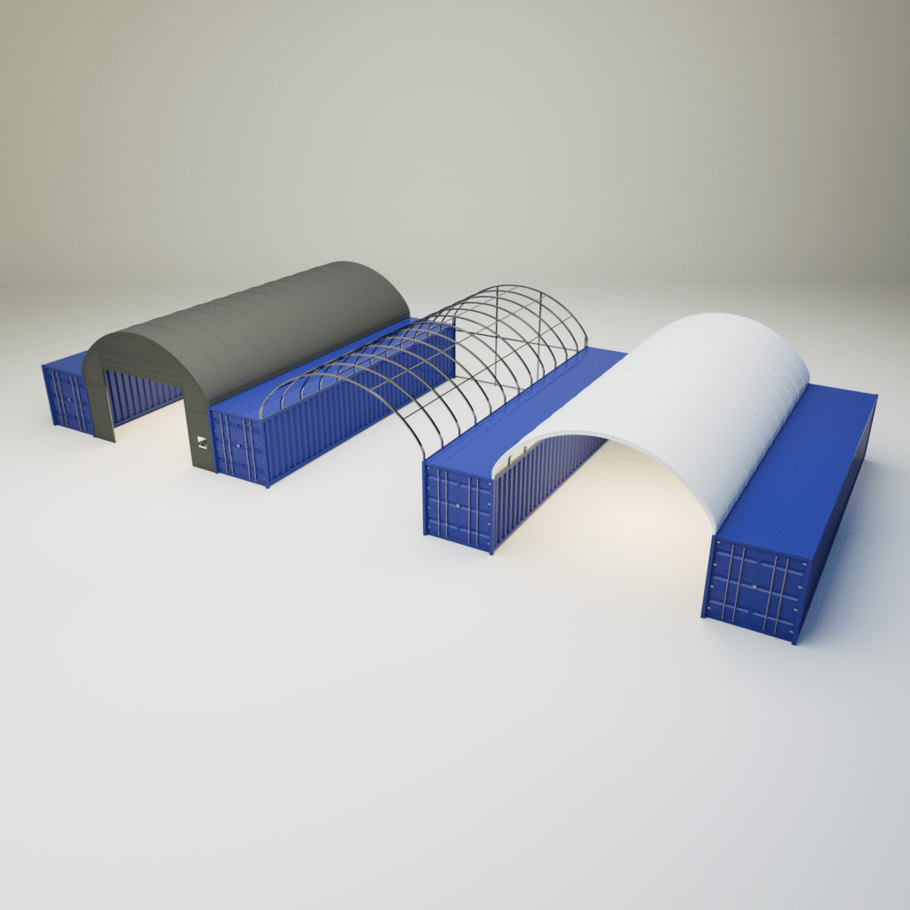 Plachtové prístrešky určené na montáž na lodné kontajnery sú skvelým spôsobom, ako využiť váš existujúci priestor na maximum. Ak vlastníte dva lodné kontajnery, tento typ prístrešku vám umožní ich jednoducho a prakticky spojiť prístreškom, ktorý vám vytvorí dodatočný krytý priestor, ktorý môžete využívať.