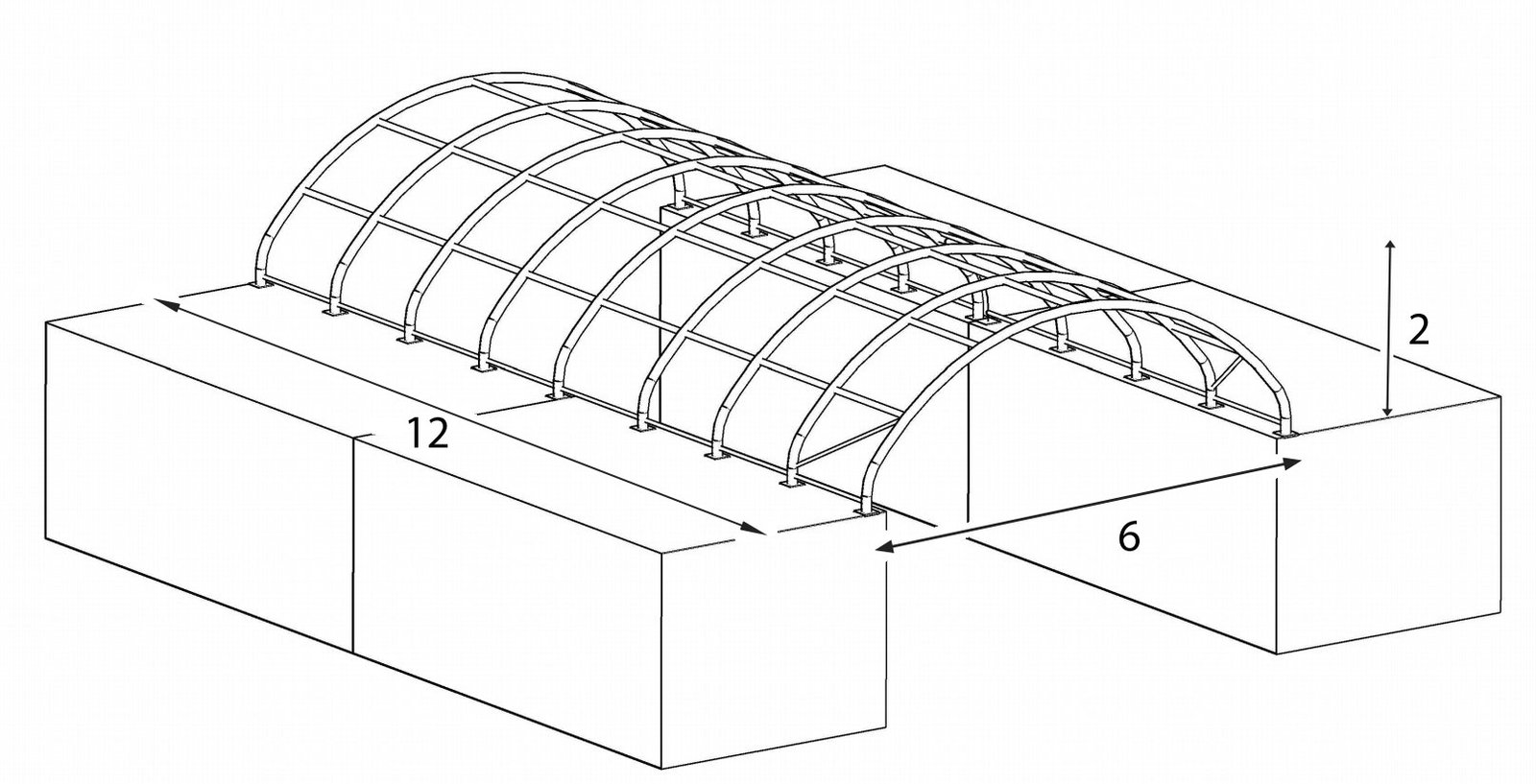 • Pevné rúry spájajúce segmenty spolu s oceľovými rúrami zvyšujú odolnosť haly voči vetru a padajúcemu snehu.