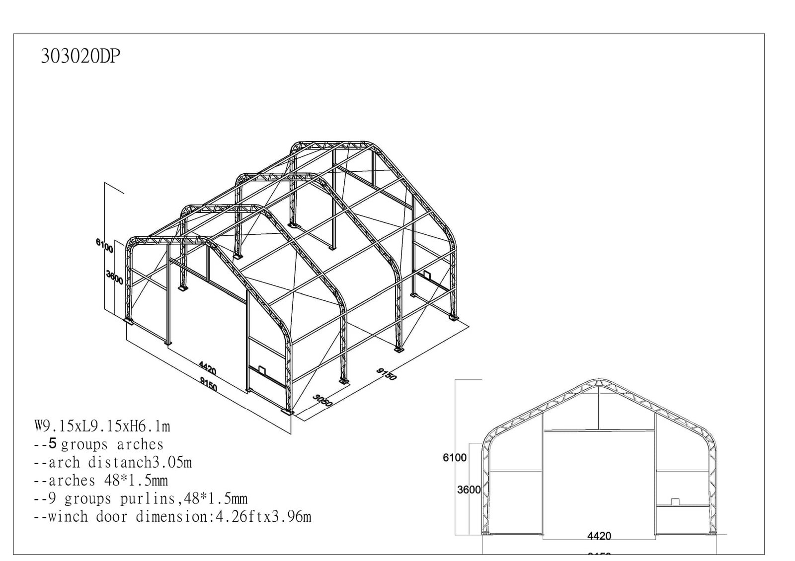 Sedlová hala 9,15 x 9,15 x 6,1 m